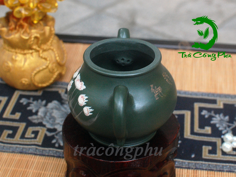 Ấm Tử Sa Lục Nê Hội Thủy (mã ATS1442) là một tác phẩm trà cụ cao cấp, mang đậm hơi thở nghệ thuật từ vùng đất Nghi Hưng, Trung Quốc. Chiếc ấm này được chế tác hoàn toàn thủ công từ dòng Lục nê nguyên khoáng – một trong những loại đất quý hiếm nhất với cấu trúc lỗ khí đặc biệt giúp giữ nhiệt cực kỳ ổn định. Qua thời gian dài sử dụng và được tôi luyện bởi nước trà, bề mặt ấm sẽ dần lên màu trầm tư, bóng mịn, không chỉ làm tăng giá trị thẩm mỹ mà còn giúp hương vị trà trở nên mềm mại, dày dặn và tròn vị hơn hẳn so với các loại ấm thông thường.