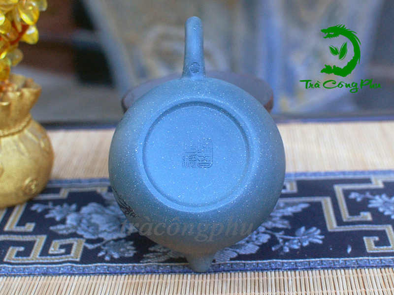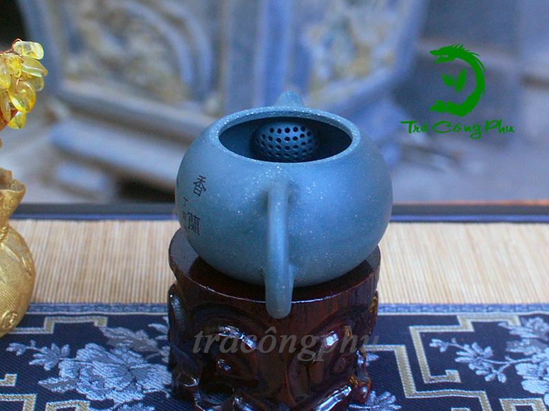 Ấm do nghệ nhân Tự Xuân Bình (徐春平製) thực hiện tại Nghi Hưng – Trung Quốc. Điểm thu hút đầu tiên của tác phẩm chính là chất liệu Lục Nê cao cấp, một loại đất hiếm trong dòng tử sa với sắc xanh thanh nhã đặc trưng. Màu sắc này không chỉ tạo nên cảm giác dịu mát, bình yên cho thị giác mà còn tôn lên khí chất cao quý của người sở hữu. Trên nền xanh lục ấy, hình ảnh nhành hoa lan được khắc họa bằng sắc đen huyền bí, tạo nên một sự tương phản đầy nghệ thuật và mê hoặc. Hai chữ Hương Lan được đề tựa tinh tế bên cạnh họa tiết hoa, gợi nhắc về cốt cách thanh cao và hương thơm bền bỉ của loài hoa quân tử.