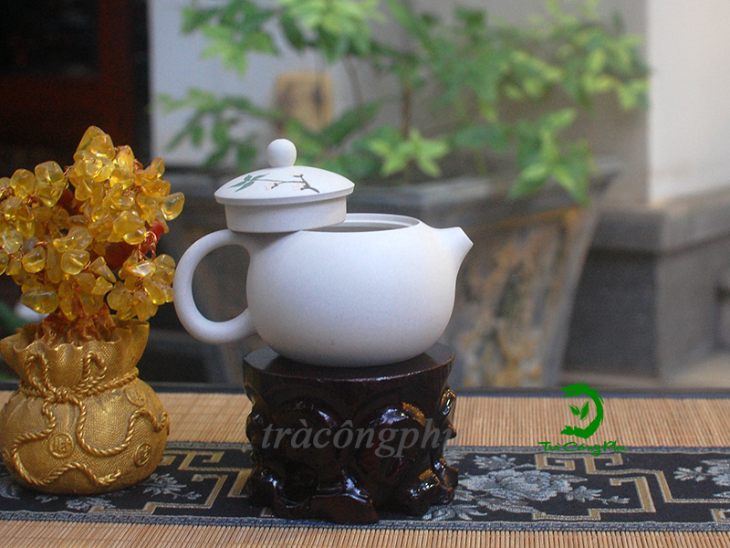 Ấm Tử Sa Tây Thi – ATS1434 được chế tác từ chất liệu Bạch Ngọc Đoạn Nê 白玉段泥 quý hiếm, mang sắc trắng tinh khiết và chất đất mịn màng cao cấp. Tên gọi Cát Tường hàm ý may mắn, hay thông và những điều tốt lành trong đời sống. Sự kết hợp giữa dáng Tây Thi mềm mại và ý nghĩa cát tường tạo nên một tác phẩm vừa đẹp về hình, vừa sâu về ý.