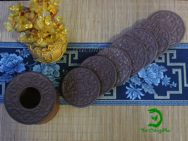Ở vị trí trung tâm là hình ảnh mặt trời - biểu tượng của may mắn, ánh sáng và năng lượng tốt lành lan tỏa. Bộ sản phầm gồm 7 đế chén mang ý nghĩa viên mãn, sum hòa, hòa hợp cho không gian trà đạo trang nhã. Vừa có giá trị sử dụng, vừa giàu tính biểu trưng, bộ sản phẩm là lựa chọn tinh tế để trưng bày hoặc làm quà tặng ý nghĩa.